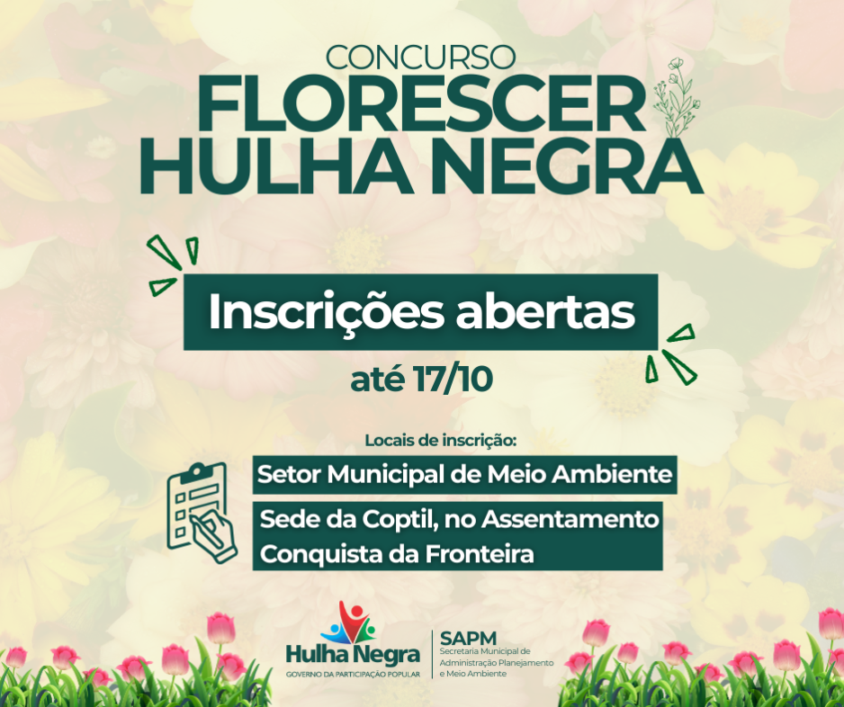 O município de Hulha Negra lança a 1ª edição do Concurso “Florescer Hulha Negra 2025”, que tem como objetivo valorizar os jardins locais, estimular a criatividade dos moradores e promover o embelezamento da cidade.